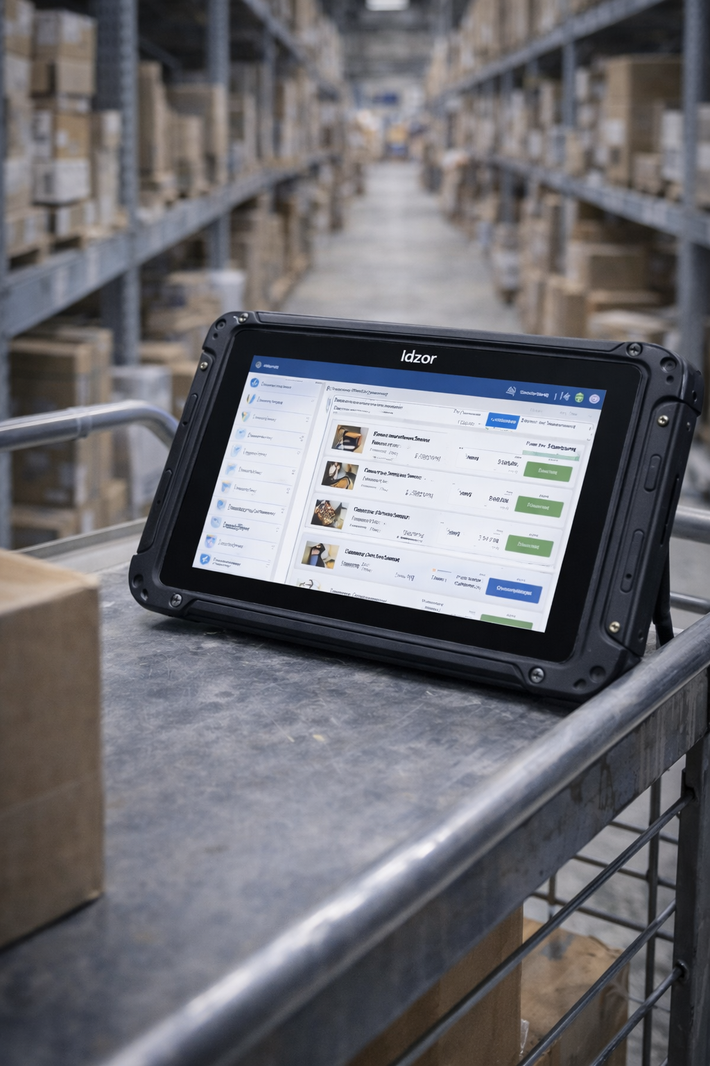 Окремо варто згадати сценарії, де планшет для складу Idzor стає мобільним робочим місцем. Це може бути інвентаризація в великих зонах, робота на візку, перевірка залишків, внутрішні переміщення між ділянками, підтримка виробництва або комплектація, де потрібно відразу бачити повний список товарів. У таких задачах планшет корисний тим, що зменшує кількість переходів між пристроями. Працівнику не потрібно окремо дивитися в папір, окремо в комп’ютер і окремо сканувати товар. Весь сценарій зібраний в одному інтерфейсі, і саме це підвищує швидкість не окремої дії, а всього процесу.